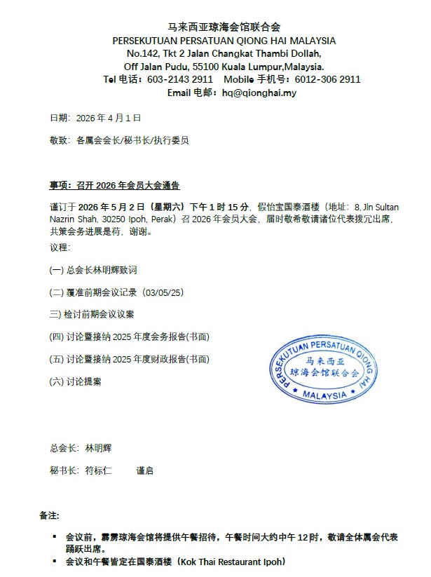 受邀出席琼海市2026年港澳台海外乡亲联谊暨招商引资推介活动 April 16, 2026April 26, 2026 Administrator 琼海市2026年港澳台海外乡亲联谊暨招商引资推介活动 2026年4月2-7日
