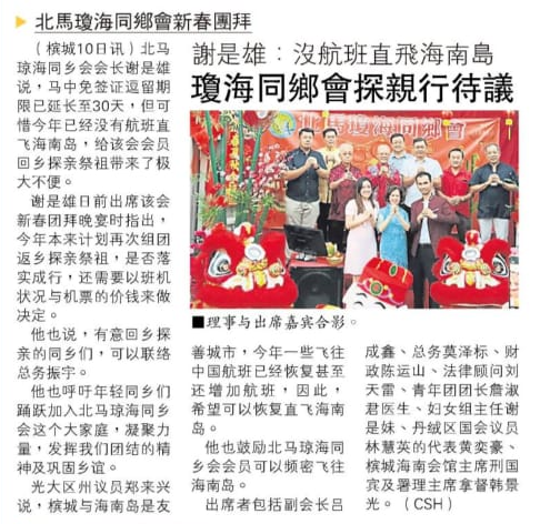 北马琼海同乡会-2月8举行新春团拜 – 光华日报 2025年1月22日